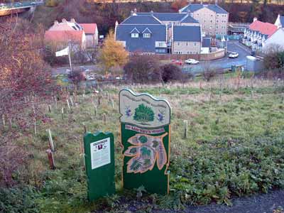 In 2004 the Juniper Green Village Association took responsibility for the site and undertook to create a woodlandfor the community to enjoy. A new entrance was added at the bottom of the site to connect up with the Water of Leith Walkway, a railway line in Dr MacKay's time. The tree species planted are rowan, gean, bird cherry, field maple, birch and juniper. The site will help to conserve some of the native species in the locality, and as the trees grow they will increasingly remove pollution from the air. Maintenance of the woodland, mainly involving weeding, grass-cutting and tree thinning, will be carried out by volunteers. An attractive information board has been erected at the top of the site.