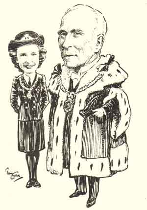 A drawing of Sir John Falconer and his daughter by Tom Curr, thanks are due to Tom's son Duncan Curr for permission to re-produce this drawing. Duncan is a long time resident of Juniper Green.