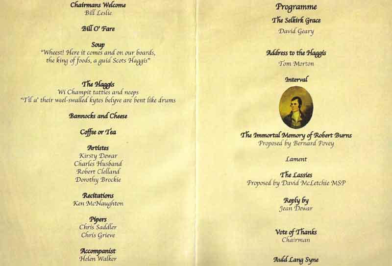 On February 10th 2007 over a hundred people sat down to a magnificent Burns Supper with all the traditional speeches and music.