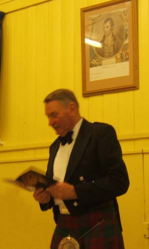 Another of the main organisers was Ken McNaughton who recited two of the famous Burns poems during the evening: Tam o' Shanter and Holy Willie's Prayer. Ken did not ride a horse home after the event!