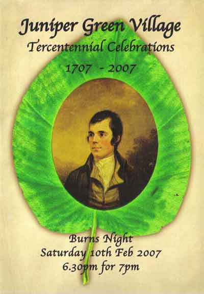 The front cover of the programme for the evening's entertainment at the Burns Supper in the Village Hall in Juniper Green on February 10th, 2007