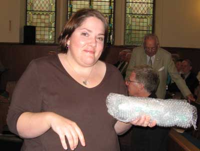 Julie's talk concentrated on the history of the snuff, paper, grain and textile mills in which Juniper Green inhabitants had worked. Her slides and drama took the audience through Jamie Thomson's poetry to a fascinating history of snuff. Did you know that the expression "toffee-nosed" came from the toffee coloured drip at the end of those wealthy noses whose owners were able to afford good quality snuff?