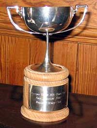 In the search for a suitable trophy a silver Edwardian cup of restrained Art Nouveau design was purchased. Coincidentally, the assay mark (Sheffield) shows that it was produced in 1907. The cup was married with a turned wooden base made from seasoned Scottish elm by George Burgess in Inverness and a simple engraved silver plaque added by Alex Kirkwood & Son.