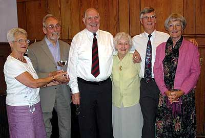 In the photograph of the presentation are (from left to right) Jean Newport, Jim Perrett, George Armstrong, Enid Perrett, George Graham and Ann Blott. The Perretts were instrumental in setting up the bridge club over 40 years ago and the remaining 4 won the Teams of 4 Competition held on January 25th 2007.