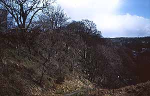 The river bank below the by-pass bridge over the Water of Leith in the 1990s, a possible site of an early bleaching green