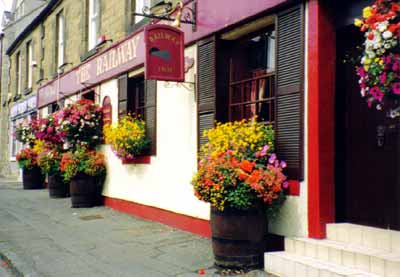 A little further down the Lanark Road and here is the "middle shop", the Railway Inn, with its beautiful display of flowers.