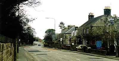 A view looking eastwards from the North side of Lanark Road showing houses opposite Juniper Green Parish Church
